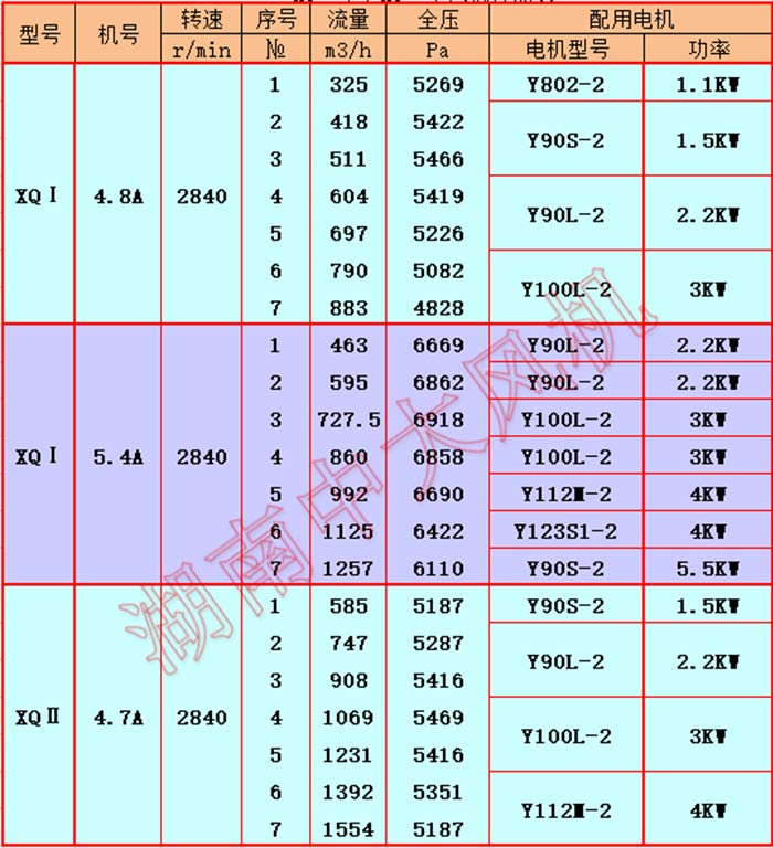 XQI、XQII型水泥斜槽風機前后彎曲葉片葉輪,弧形輪蓋,收斂形進風口,高壓力,小流量,效率較高,高校區寬廣,在流量變化需求較大時仍能保持壓力穩定,是非常適合斜槽使用的高壓風機。